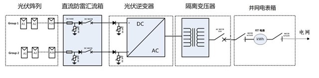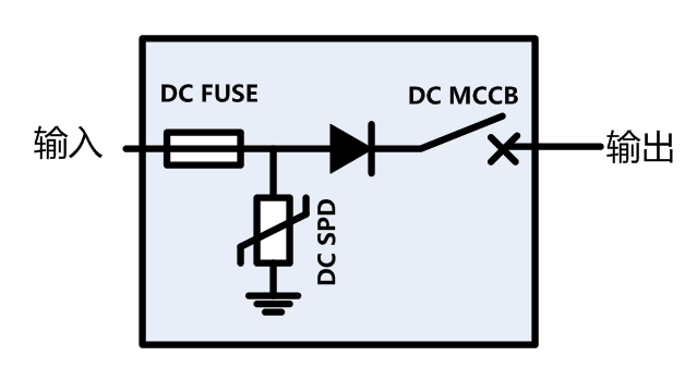 1¡¢ÐèÒªÔÚ×é¼þºÍÄæ±äÆ÷֮ǰÅ䱸ֱÁ÷»ãÁ÷Ï䣨»ò½Ð¡°¹â·üÕóÁзÀÀ×»ãÁ÷Ï䡱£©£¬Ã¿¸ö֧·±ØÐëÓÐÖ±Á÷ÈÛ¶ÏÆ÷¡¢×èÁ÷¶þ¼«¹Ü£¨×èÁ÷¶þ¼«¹Ü½ÓÓÚÕý¼«£©¡¢Ö±Á÷¶Ï·Æ÷¡¢ÀËÓ¿±£»¤Æ÷£¬ÈçÏÂͼËùʾ£»