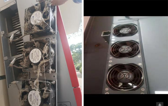 ÈçÏÂͼËùʾ£¬¾ÍÊÇÒ»¸öµäÐ͵ݸÀý£¬³¤ÆÚÔÚ»Ò³¾½Ï¶à³¡Ëù£¬ÖÂʹ·çÉȳö·ç¿Ú¶ÂÈû£¬·çÉÈתËÙϽµ£¬µ¼Ö·¢µçÁ¿µÍ²¢±¨¹ÊÕÏ¡£¶ÔÓÚ´øÇ¿ÖÆ·çÀäµÄÄæ±äÆ÷£¬ÓÉÓÚ×ÔÉíÕý³£¹¤×÷ÔÒòºÍÉ¢ÈÈÐèÒª£¬½¨Òé°²×°µØµãÔ¶ÀëÈËȺ/¾ÓסµØµÈ£¬±£Ö¤¾Óס»·¾³µÄÊæÊÊÐÔ¡£