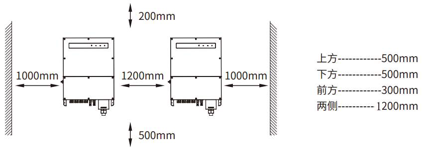 °²×°Ê±±ØÐëÒª¿¼ÂǸ÷»úÐ͵ݲװ¾àÀ룬Èô¾àÀë½ÏС£¬»áÔö¼Ó·çÉÈתËÙ£¬Ó°ÏìÉ¢ÈÈ£¬×îÖÕÓ°Ïì·¢µçÁ¿£¬¾ßÌå°²×°¾àÀë³ß´ç£¬²Î¿¼ÈçÏ£º