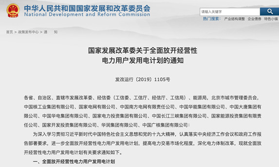 6ÔÂ22ÈÕ£¬¹ú¼Ò·¢Õ¹¸Ä¸ïίÏ·¢ÁË¡¶¹ØÓÚÈ«Ãæ·Å¿ª¾ÓªÐÔµçÁ¦Óû§·¢ÓÃµç¼Æ»®µÄ֪ͨ ¡·£¬Ìá³ö£º
