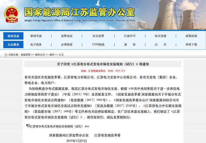 12ÔÂ9ÈÕ£¬½ËÕÄÜÔ´¼à¹Ü°ì¡¢½ËÕÊ¡·¢Õ¹¸Ä¸ïÎ¯ÖÆ¶¨²¢·¢²¼¡¶½ËÕÊ¡·Ö²¼Ê½·¢µçÊг¡»¯½»Ò×¹æÔò£¨ÊÔÐУ©¡·£¬ÒªÇó¸÷ÓÐ¹ØÆóÒµºÍ²¿ÃÅÈÏÕæ¹á³¹Ö´ÐУ¬½øÒ»²½¹æ·¶½ËÕ·Ö²¼Ê½·¢µçÊг¡»¯½»Ò×£¬¼Ó¿ìÍÆ½ø·Ö²¼Ê½ÄÜÔ´·¢Õ¹¡£