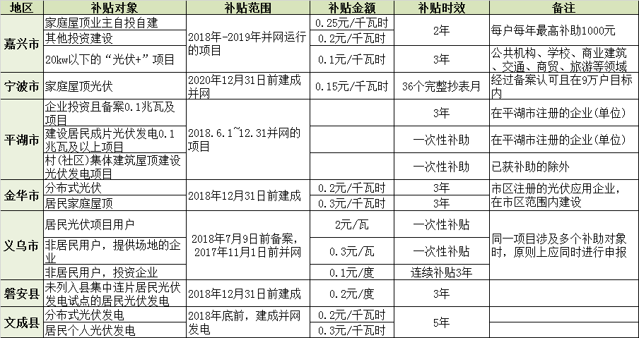 ²¹Ìù¶ÔÏóºÍ½ð¶î£º¹â·üµçÕ¾0.3Ôª/ǧÍßʱ£»·Ö²¼Ê½¹â·ü£º¹¤¡¢ÉÌÒµÓû§0.25Ôª/ǧÍßʱ£»Ñ§Ð£Óû§0.55Ôª/ǧÍßʱ£»¸öÈË¡¢ÑøÀÏÔºµÈ0.4Ôª/ǧÍßʱ£¬²¹Ìù5Äê¡£