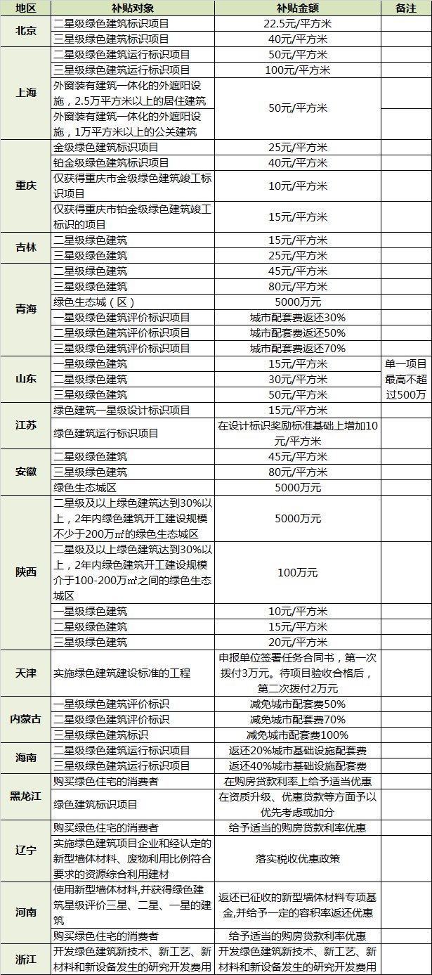 Ϊ¹ÄÀøÂÌÉ«½¨ÖþµÄ·¢Õ¹£¬¹ú¼ÒºÍ¸÷Ê¡Êж¼³ǫ̈ÁËÕþ²ß²¹Ìù£¬Ð¡¹ÌÒ²ÕûÀíÁËÏà¹Ø²¹ÌùÕþ²ß£º