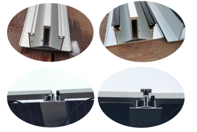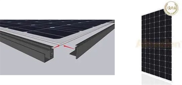 Ñô¹â·¿²ÉÓõÄÊǹ¹¼þʽ¹â·üÍߣ¬¹¹¼þʽ¹â·üÍߵı߿òÊÇÓÉËĸù²»Í¬µÄÂÁ¿ò¹¹³É¡£Ë®Æ½·½ÏòÏ໥ҧºÏ£¬´¹Ö±²¿·ÖÖØµþ»¥Ëø£¬°²×°·½Ê½ÀàËÆÓÚÎݶ¥Í߯¬¡£