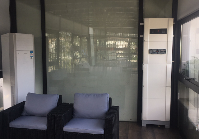 ´¢ÄÜÒ»Ìå»úÉ豸¸ß¶ÈÔ¼ÓÐ2Ã×£¬ÐèÒªÖ§¼Ü¸úÂÁºÏ½ð²¿·Ö¹Ì¶¨£¬Ñô¹â·¿µØ°å´ò¿×´©µ½µØ°åÏÂ×ß½»Á÷ÏßÀºͽӵç±íµÄÏßÀ£¬ÔÙÔÚÇ½Ãæ´ò¿×´©µ½ÅԱߵÄÅäµç·¿ÖС£