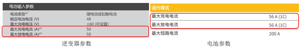 ÔÚÉè¼Æ´¢ÄÜϵͳʱ£¬Äæ±äÆ÷ºÍµç³ØµÄͬһ²ÎÊýÊÇ·ñÆ¥ÅäÊǷdz£ÖØÒªµÄ¡£Èç¹û²ÎÊý²¢²»Æ¥Å䣬ϵͳ±ã»á×ñѽÏСµÄÊýÖµÀ´ÔËÐС£ÌرðÊÇÔÚ±¸ÓõçԴģʽÏ£¬Éè¼ÆÕßÓ¦¸ù¾Ý½ÏµÍµÄÊýÖµÀ´½øÐÐµç³Ø³ä·ÅµçËÙ¶ÈÒÔ¼°¹©µçÄÜÁ¦µÄ¼ÆËã¡£ÀýÈ磬Èô½«ÏÂͼËùʾµÄÄæ±äÆ÷ºÍµç³ØÆ¥ÅäʹÓã¬ÏµÍ³µÄ×î´ó³ä·ÅµçµçÁ÷±ãΪ50A¡£