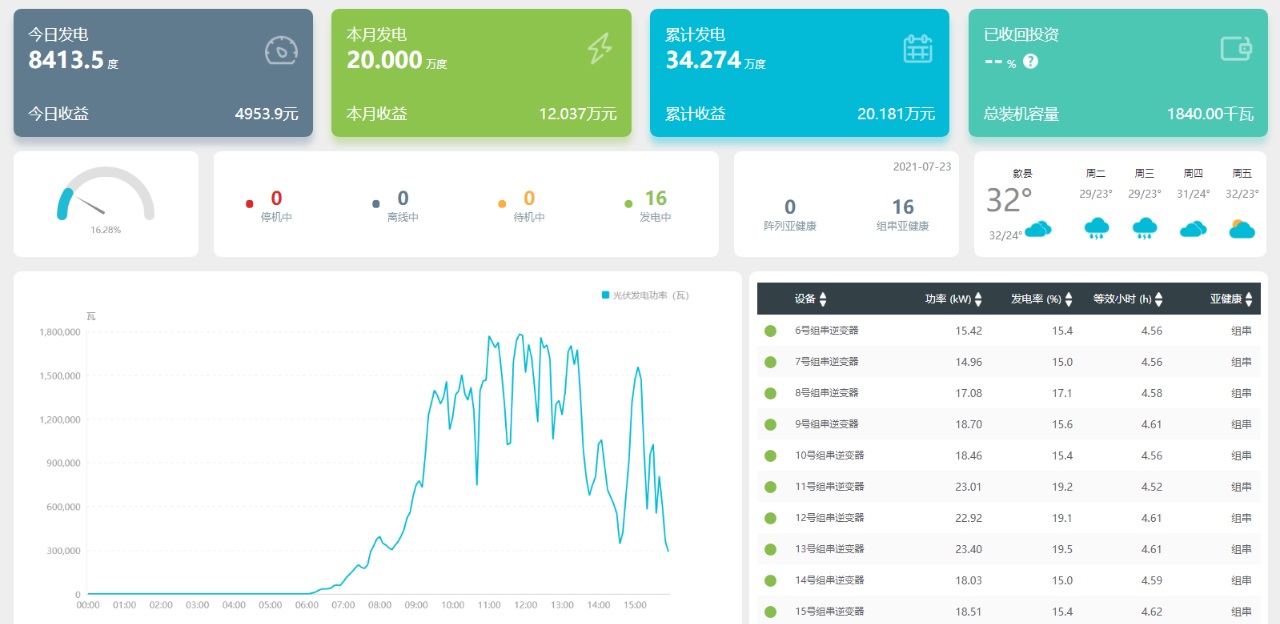 ÏîÄ¿×ÜÈÝÁ¿Îª2389.2kWp,²ÉÓÃ330Wp¸ßЧ¶à¾§×é¼þ7240Ƭ,°²×°ÔÚÈý¸ö²Ê¸ÖÍßÎݶ¥£¬×é¼þ°´ÕÕ20~21Ò»´®½ÓÈ룻¹²Ê¹ÓÃ16̨100/120kW×é´®Ê½Äæ±äÆ÷£¬ÏµÍ³³¬ÅäΪ1.3×óÓÒ£»ÏîÄ¿²ÉÓá°×Ô·¢×ÔÓã¬ÓàµçÉÏÍø¡±µÄģʽ£¬·ÖËĸö²¢Íøµã½ÓÈëÔÅäµçϵͳ¡£