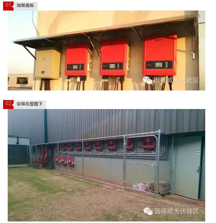 由于逆变器腔内温度过高会对元器件寿命产生影响,所以对应的逆变器也有相应的保护机制——降载,一般逆变器的工作温度在-25℃~60℃之间,高于45℃机器会开始降载,所以阳光直射提高逆变器腔内温度后会导致逆变器降载影响发电效率。这和手机电脑过热时CPU降频是一个道理,所以大家一定要注意。