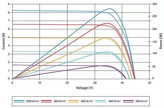ÂÌÉ«ÇúÏßÊÇÎÞÕÚµ²¡¢¹âÕÕÕý³£µÄÇé¿öÏ£¬×é¼þµÄ¹¦ÂÊÌØÐÔÇúÏß¡£¶øÔÚÒõÓ°ÕÚµ²µÄʱºò£¬×é¼þµÄ¹¦ÂÊÌØÐÔÇúÏß»á³öÏֶನ·åµÄÇé¿ö£¨ºìÉ«ÇúÏߣ©¡£ÈçÏÂͼËùʾ£º