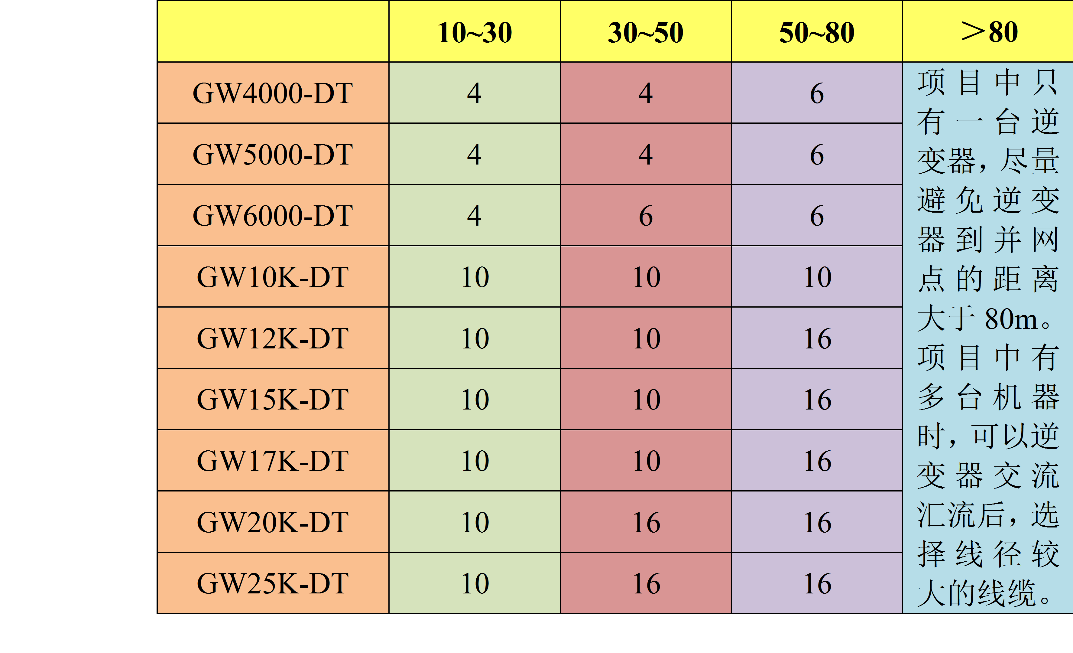 2? µçÀ½ØÃ棺GW25K-DTµÄ½»Á÷Êä³ö×î´óµçÁ÷Ϊ37A£¬»·¾³Î¶ÈΪËÄÊ®¶È£¬Ã÷¹ÜÆÌÉ裬²éѯ±í¸ñ¿¼ÂÇÓàÁ¿ÏòÉÏÉý¼¶ºó10mm2ÏßÀÂÂú×ãÒªÇó£»